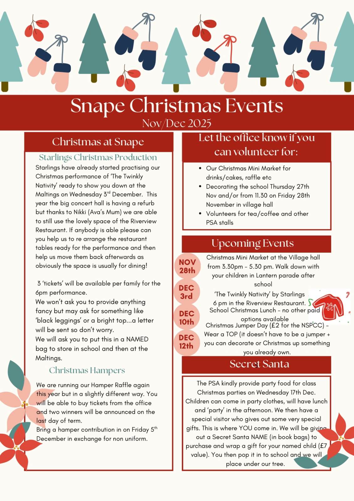 Friday 5th - Non uniform day in exchange for a Christmas Hamper donation
